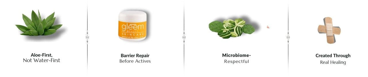 Gleem Skincare uses aloe vera and science-backed ingredients for healthy skin. CLICK HERE TO LEARN MORE ABOUT ALOE VERA AND OTHER INGREDIENTS