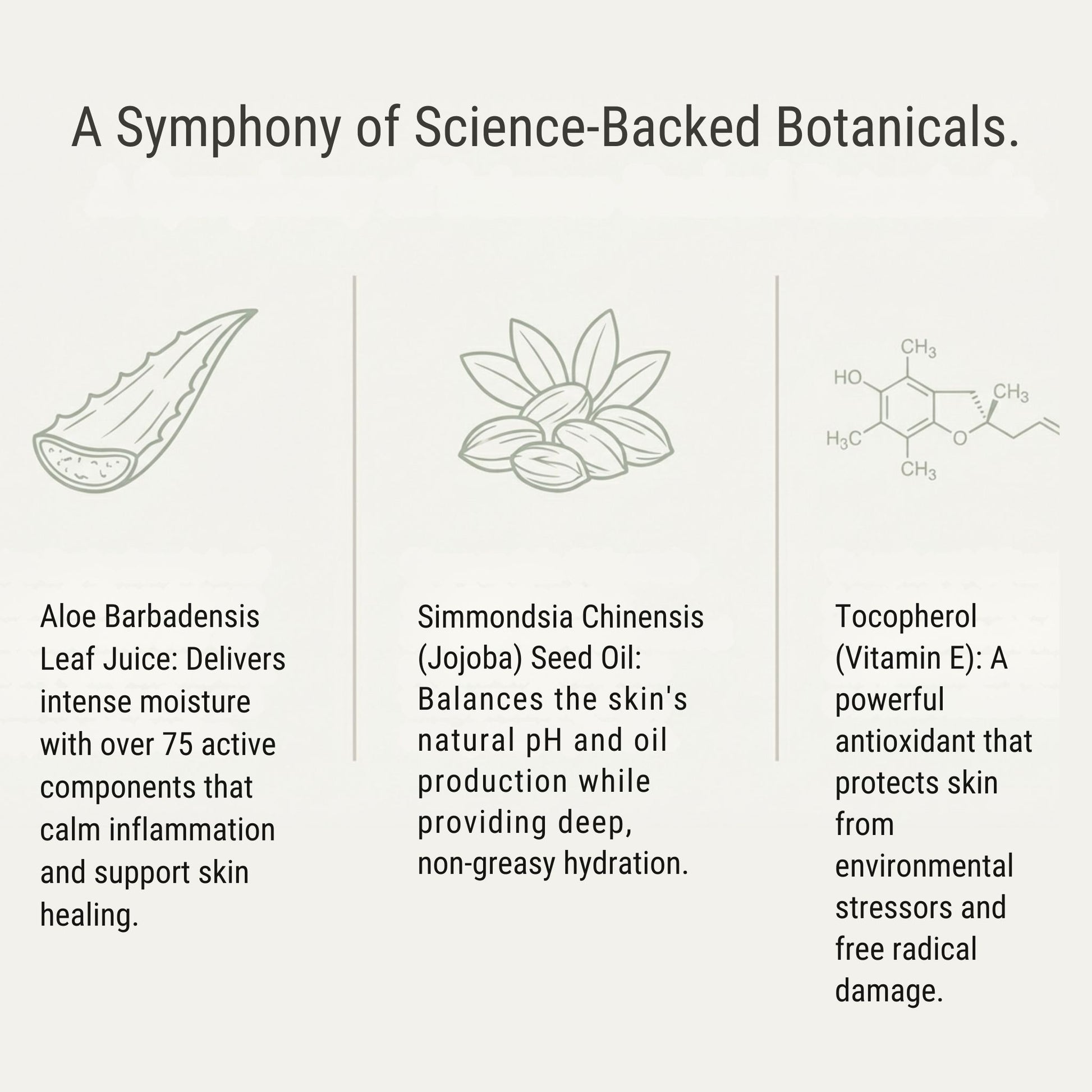 - Aloe Barbadensis Leaf Juice delivers intense moisture while calming inflammation and supporting skin healing